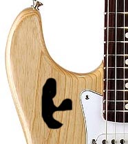 まず、現在のと昔のギターの写真から剥がれパターンをそれぞれ別にスケッチする。「きっと正面から見たらこんな感じだったんだろーなー」と想像しながらね。で、その二つのパターンを比べてつじつまが合うように少しづつ書き直していくんだ